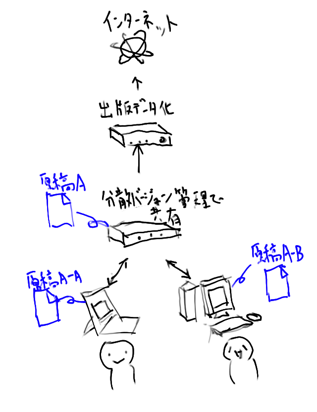 「AさんとBさんが同時に執筆して別々に履歴管理をし、その結果をすり合わせる事が容易」